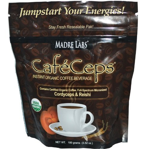 Madre Labs, CafeCeps, Instant Organic Coffee Beverage, Stay Fresh Re-Sealable Pak!, 3.52 oz (100 g) Pack Of 2, hopefully can help you in buying the product.